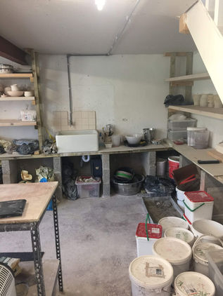 Work benches I custom built from concrete blocks and planking or used recycled old kitchen units. Last year I finally installed an old Belfast sink with running water. This has made a great difference to my work. Potters are constantly washing and cleaning throughout the day. Water is essential for all aspects of making a piece of pottery. Having running water available in the workshop as opposed to carrying endless buckets of water back forth each day has made life infinitely easier!!